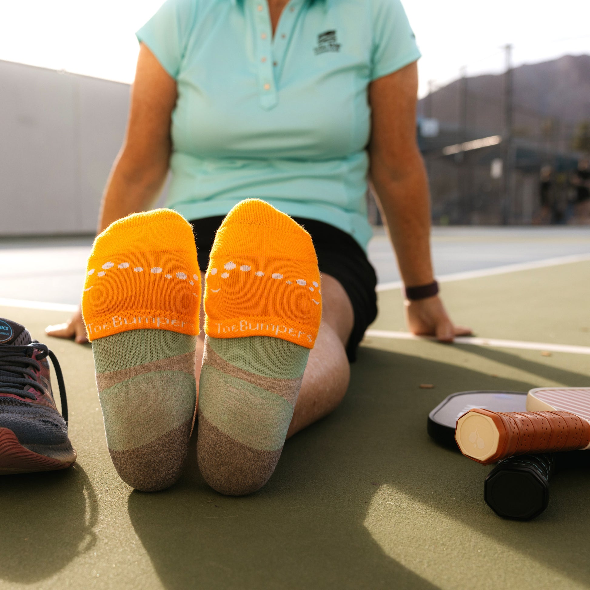 Toe Bumpers are seamless and moisture-wicking to keep your feet dry and blister-free.
